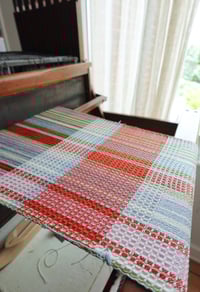 A short scarf, handmade in the UK, woven on my traditional loom, in a colourful pattern. Made using natural, biodegradable fibres, soft to touch.