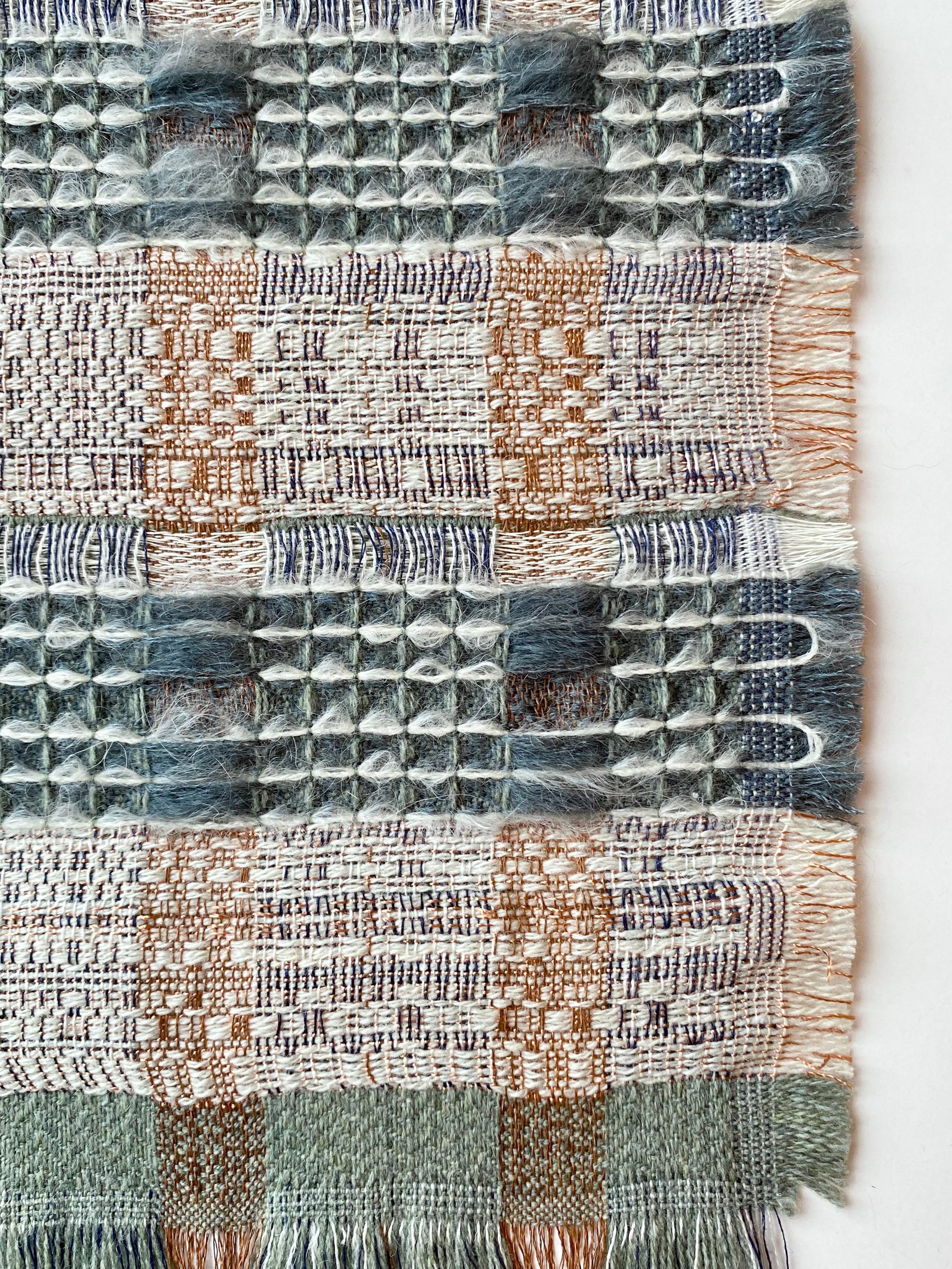 Woven and designed by me, on floor loom. Inspired by nature’s materials and tactile qualities.