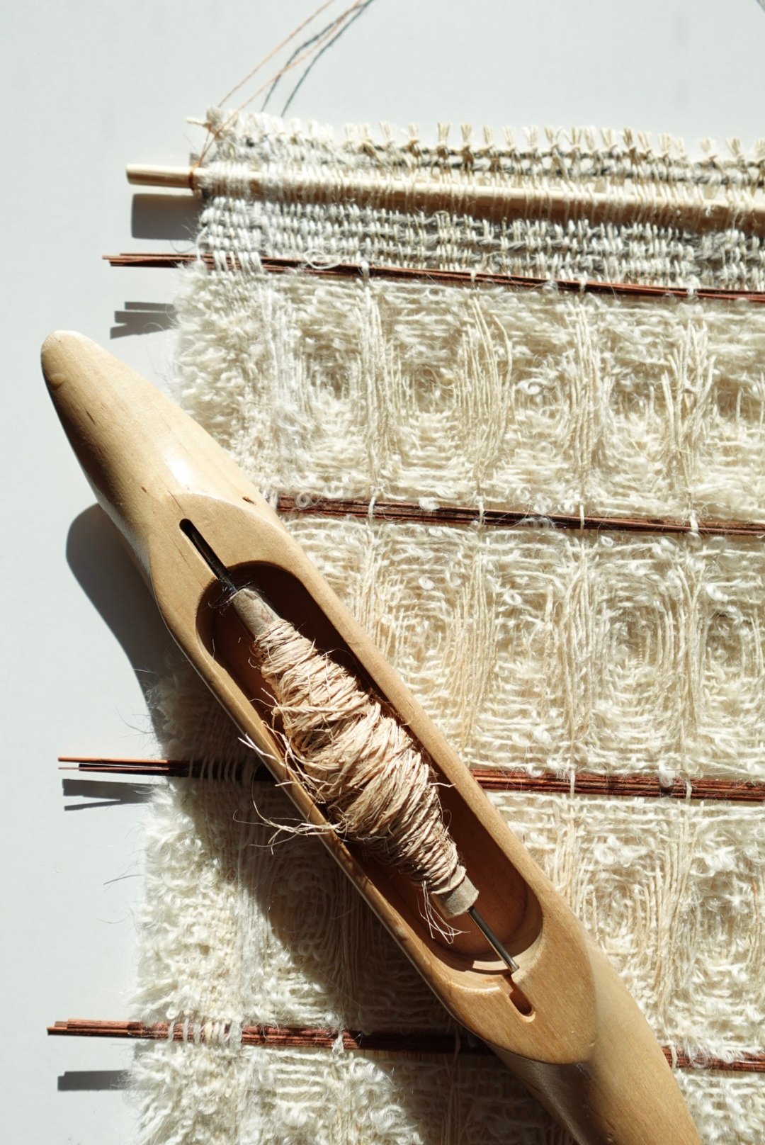 Woven and designed by me, on floor loom. Inspired by nature’s materials and tactile qualities.