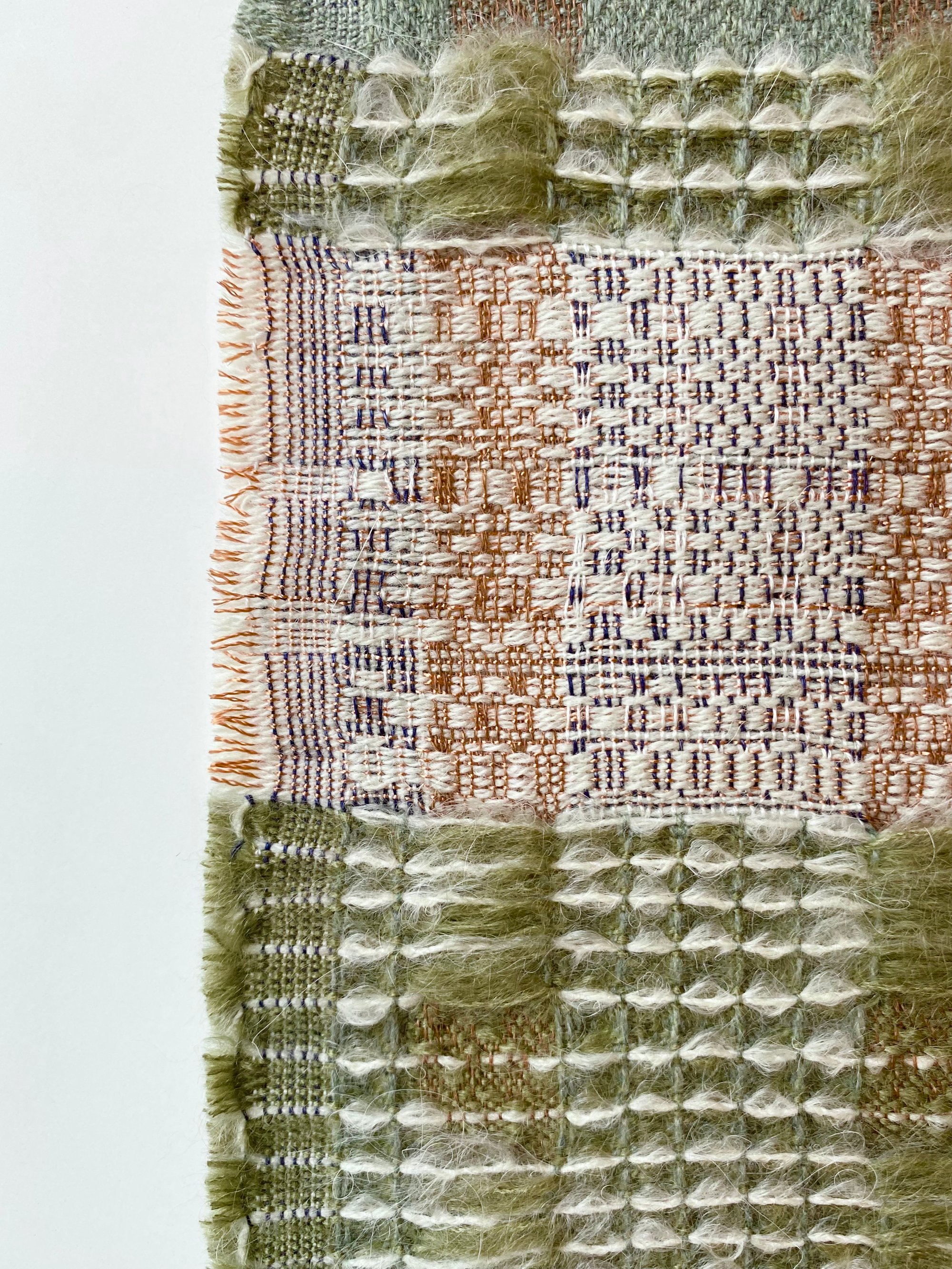 Woven and designed by me, on floor loom. Inspired by nature’s materials and tactile qualities.