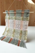 A one-of-a-kind, mini wall hanging. Woven with soft to touch fibres and comforting colours. All of the materials are natural and biodegradable.