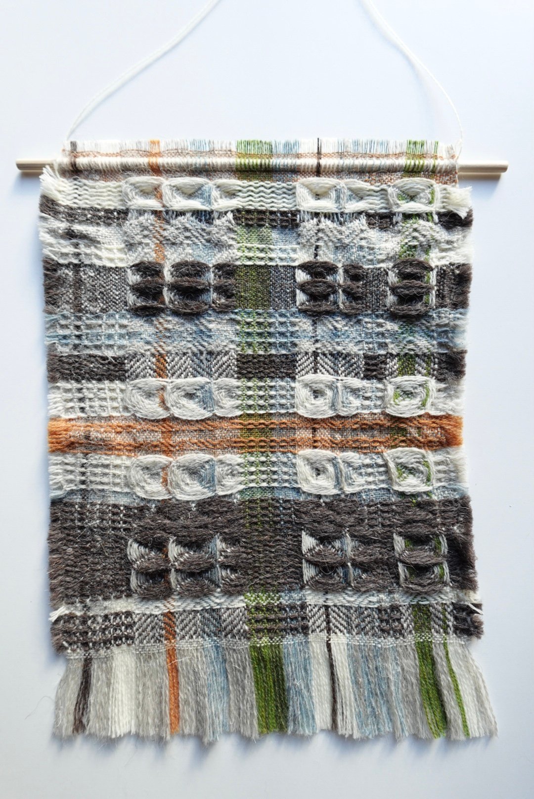 A one-of-a-kind, handwoven wall hanging. A small artwork inspired by Welsh mountain landscapes. All of the materials are natural and biodegradable.
